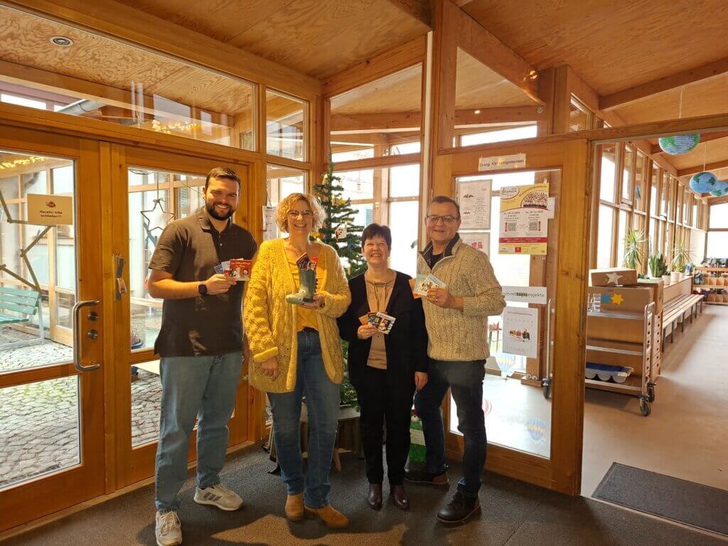 Jedes Jahr am 06. Dezember dürfen sich die Kinder im Haus der Kinder am Gartenfeld über eine Nikolausüberraschung in ihrem Schuh freuen. In diesem Jahr erhielt der Nikolaus Unterstützung vom SPD Ortsverband Burgbernheim. Roman und Karl-Otto Mollwitz überreichten den Kindergartenleitungen Frau Fischer (Haus der Kinder) und Frau Schnotz (Arche Noah) Pixi Büchlein für jedes Kind. Vorlesen ist eine Superkraft und so finden die Kinder heuer neben Schokolade und Vitaminen auch eine spannende Geschichte in ihrem Schuh.