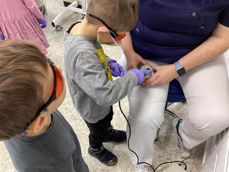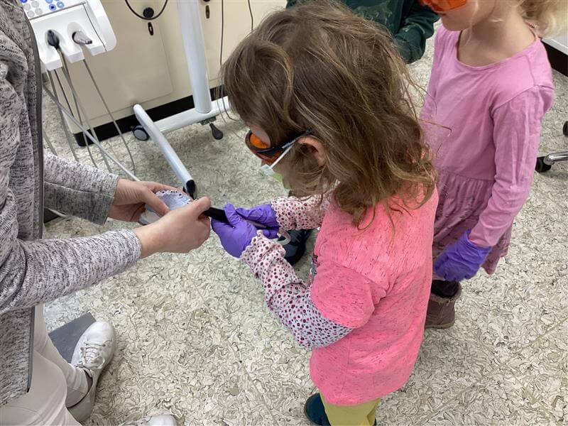 Begeistert kamen die „Schlauen Marienkäfer“ zurück ins Haus der Kinder, sie erzählten vom Zahnarztbesuch und beschlossen, wir brauchen eine Zahnarztpraxis bei uns im Kindergarten. Gemeinsam mit einer Erzieherin erstellten sie eine lange Liste an Dingen, die für die Zahnarztpraxis gebraucht werden. Danach wurde überlegt, wie man an diese Sachen kommen könnte. Eine Mama, Zahnarztmitarbeiterin, wurde angesprochen, ob sie Utensilien vom Zahnarzt mitbringen könnte, im Kindergarten gingen die Kinder auf die Suche nach Gegenständen für ihre Praxis.