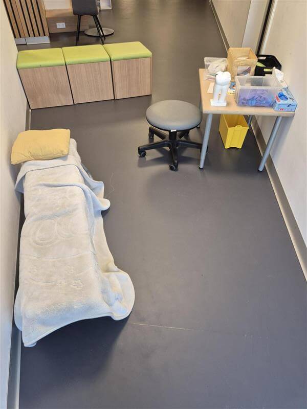 Nach kurzer Zeit ist die Praxis umgezogen, der Raum im Flur war für die Kapazitäten einfach zu klein. Inzwischen sind unsere Dentalspezialisten im Rollenspielraum zu finden – und bestimmt gibt es noch freie Termine!