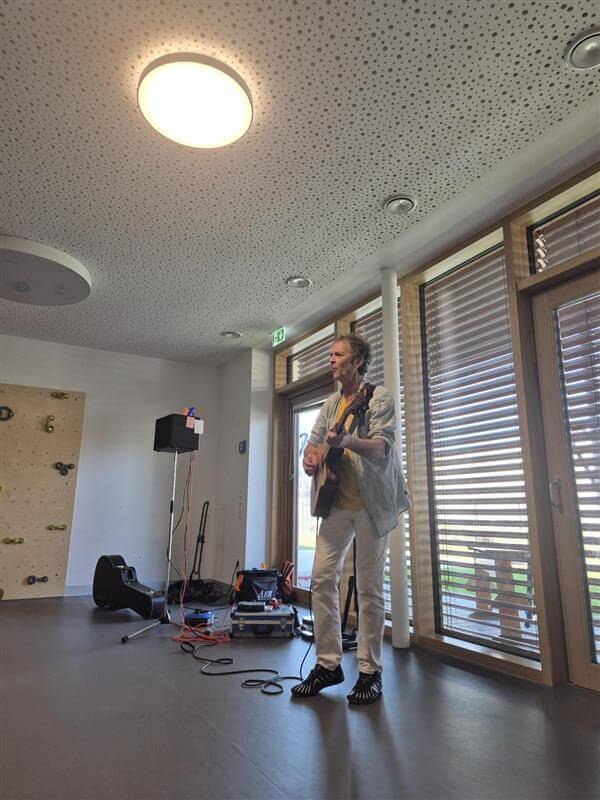 Die Kinder konnten miterleben, wie Musiker Rainer Wenzel seine Anlage aufbaute und testete und hatten so bereits bei Frühstück einen Vorgeschmack auf das spätere Konzert.
